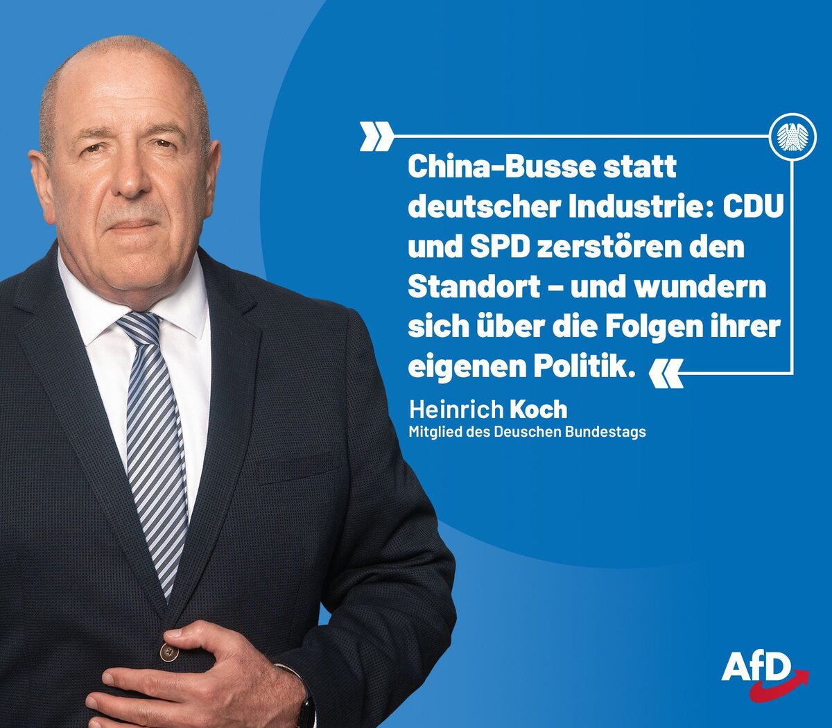 Wir als AfD sagen klar: Deutschland braucht wieder Technologieoffenheit statt Ideologie, bezahlbare Energie statt grüne Wunschträume und Industriepolitik im Interesse des eigenen Landes. Wer will, dass Busse für die Deutsche Bahn wieder in Deutschland gebaut werden, der muss endlich aufhören, deutsche Industrie mutwillig zu zerstören.“
