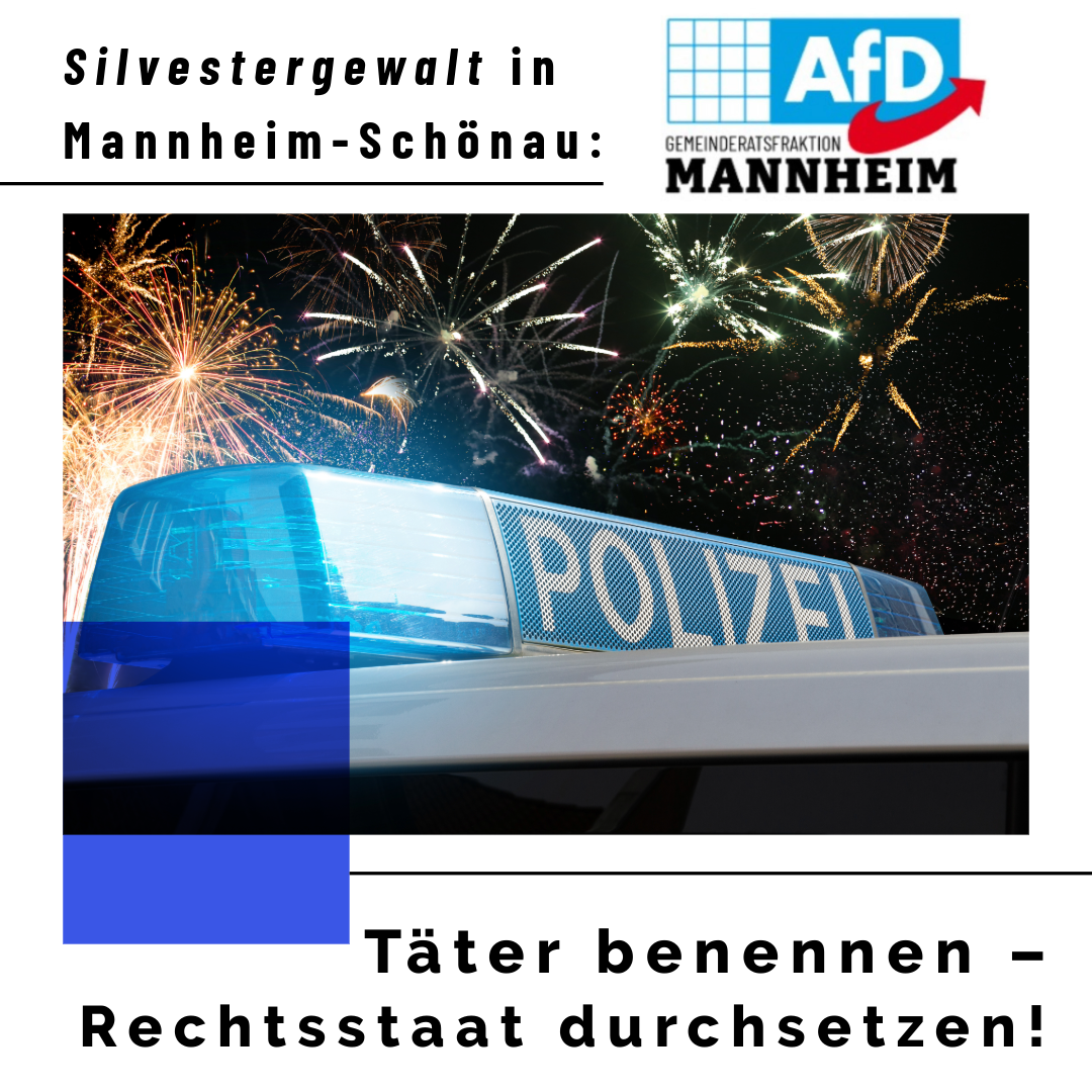 Die AfD-Fraktion im Gemeinderat Mannheim stellt sich ausdrücklich hinter die eingesetzten Polizeibeamtinnen und Polizeibeamten und dankt ihnen für ihren Einsatz. Angriffe auf Einsatzkräfte sind Angriffe auf den Staat und auf die Sicherheit aller Bürger.